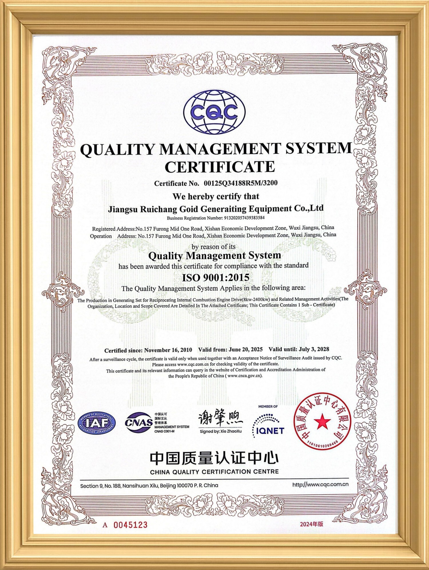 RCGPOWER has obtained a series of internationally recognized certifications and established a comprehensive quality management system to ensure every piece of equipment meets the highest standards, delivering safe and reliable power solutions to customers.